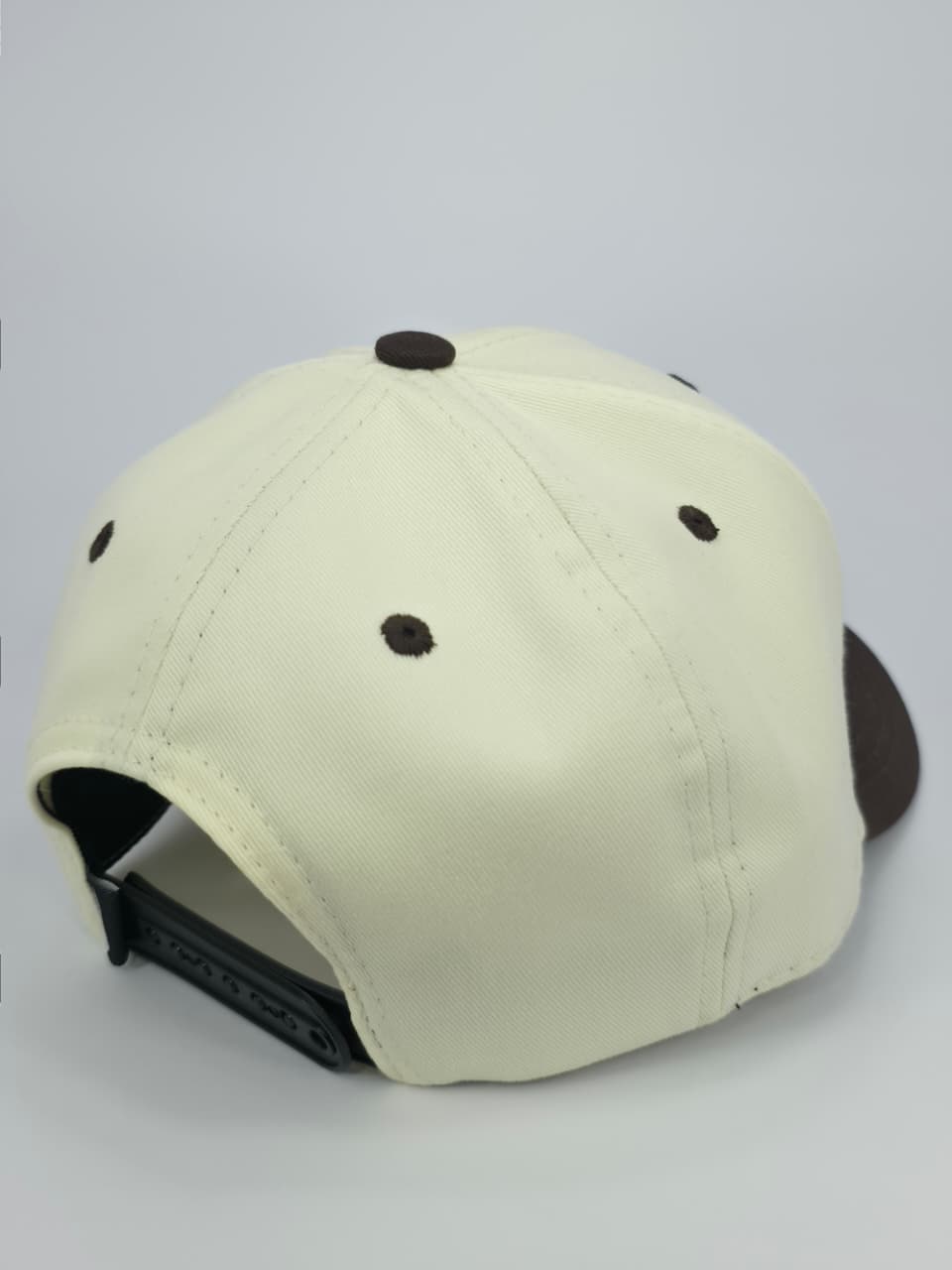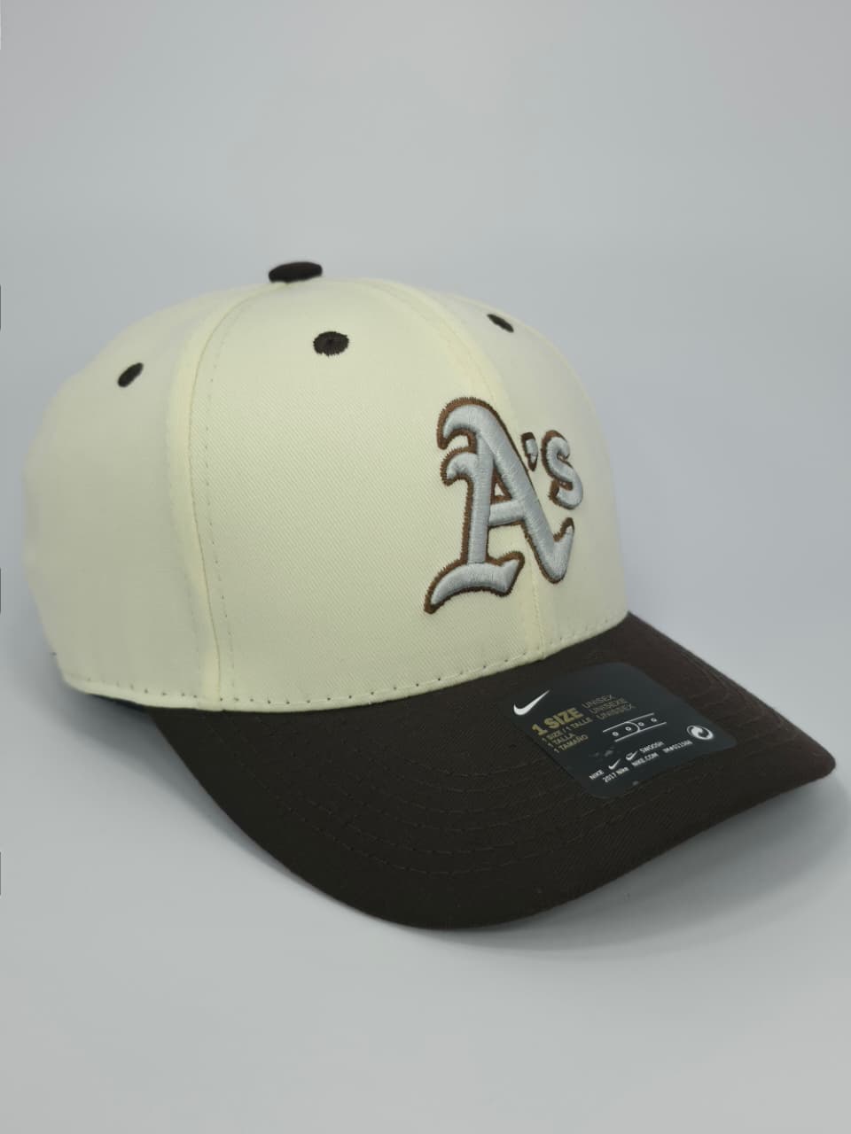 - Bordado Frontal: Logo "A´s" en relieve 3D color gris con borde café.